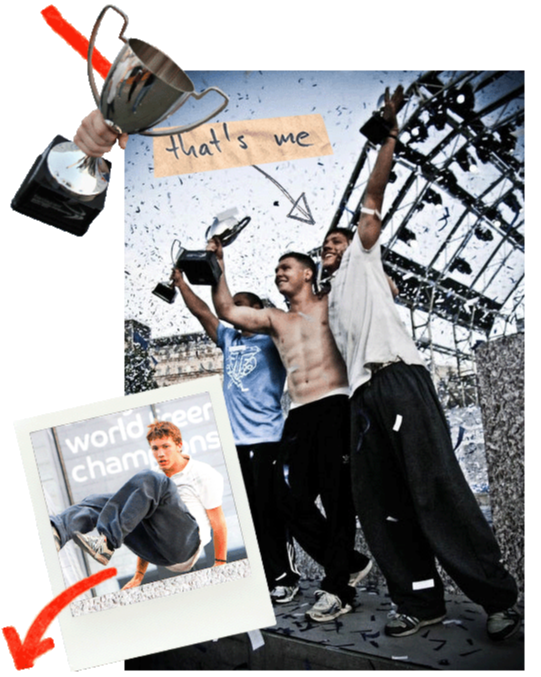 I'm invited to represent Germany at one of the early Parkour world championships in front of 11.000 people at Trafalgar Square and broadcast live on BBC2. I almost shit my pants, because in all my life I never performed anything in front of a crowd.