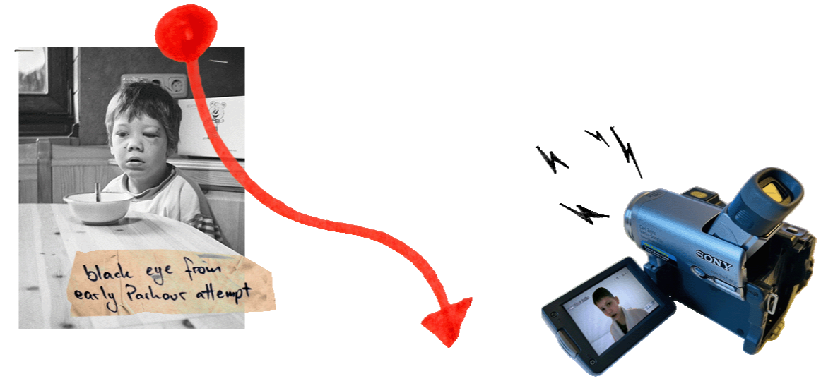My friend David comes over with a VHS tape showing adults in Paris jumping from one rooftop to another. Despite both of us being un-athletic video-game nerds we decide it's a good idea to give it a go!